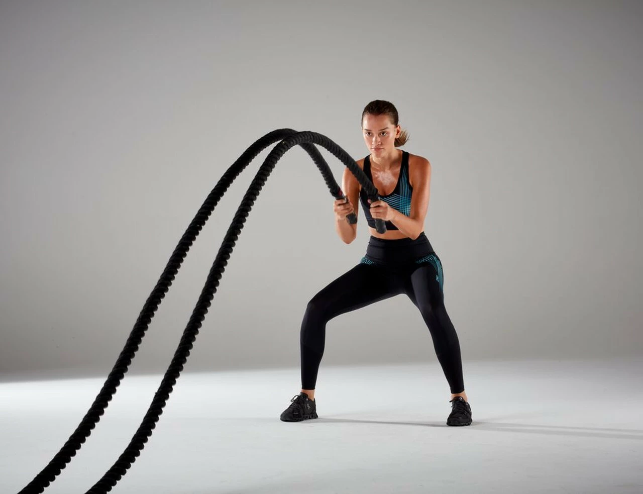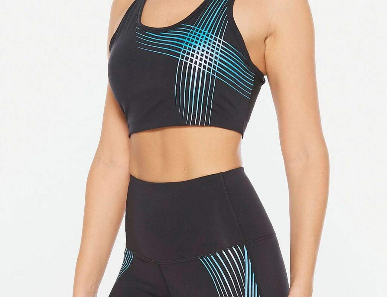 2XU – ACTIVE Women’s Medium Impact Crop Top – Black/Teal Chrome Lines – Autumn/Winter 2020