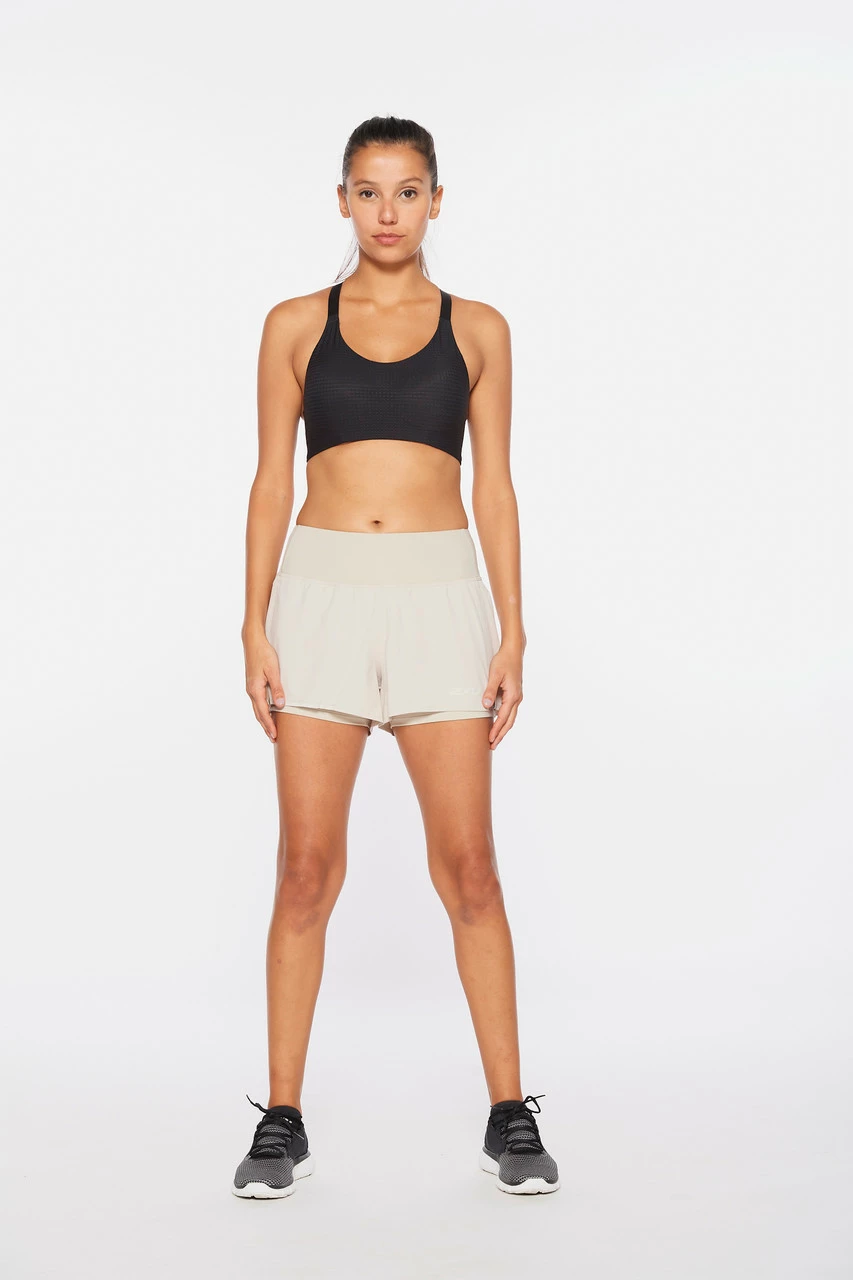 2XU – Aero Women’s 2-in-1 3in Shorts – Oatmeal/Oatmeal Reflective