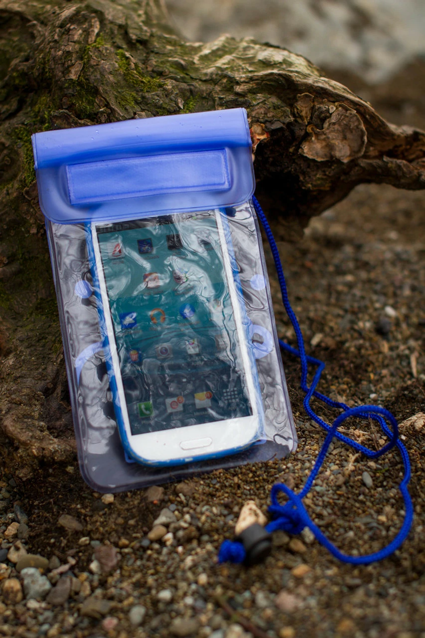 An inflatable dry bag with a phone window that doubles as a safety buoy for increased visibility in the open water.