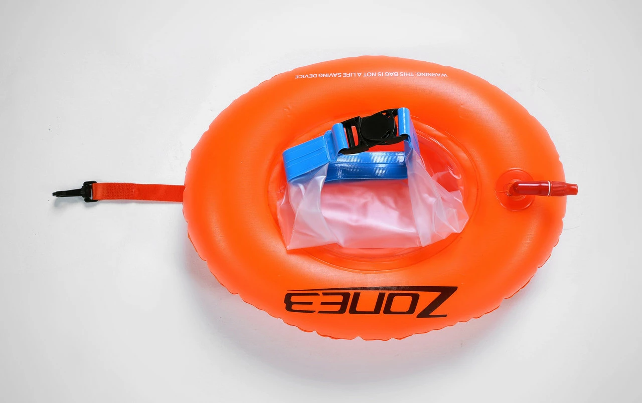 This style of dry bag offers swimmers the rare opportunity to access products whilst in the open water. The donut shaped buoy features a double lined central dry bag which means you can assess a drink, nutrition, spare goggles, Go Pro etc whilst on the move.