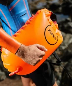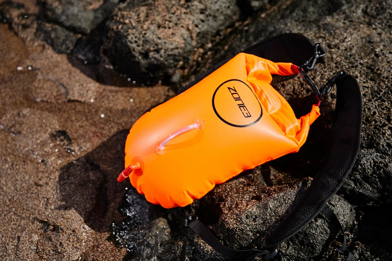 The Zone3 dry bag features dual air bags, to be inflated once the bag is filled with training gear. The inflation chambers are separate from the storage area, thus providing more buoyancy than just a normal dry bag.
